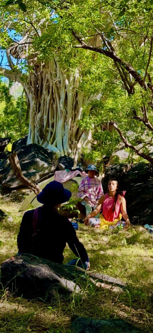 The middle of the day was quite hot and the sun still quite strong. On the third and fourth day the group gathered at what is referred to as the “outside Gönpa” a shady area next to the pallid muscular trunk of an enormous fig tree and with a view of an even older, exquisite fig tree. Here Fabio continued to clarify the practice of Longde. After that we were asked to practice on our own.