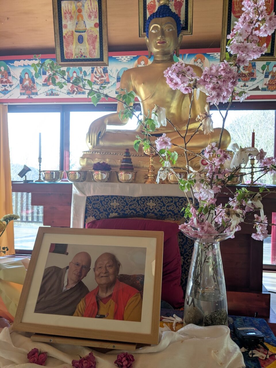 We are in the House of Wisdom at Karmaling, a Buddhist center in Savoie, France. The center was founded and is directed by Lama Denys Rinpoche, a disciple of Kalu Rinpoche. It’s part of the Rimay community, which means unity in diversity. Lama Denys had the opportunity to meet Chögyal Namkai Norbu and was particularly moved by the Vajra dances during a stay in Russia. A bond of mastery developed between them. Chögyal Namkai Norbu has regularly accepted Lama Denys’s invitations to come and teach at Karmaling. The Vajra dance has been practiced and developed here for about thirty years.
