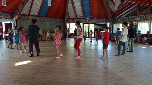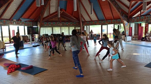 I bambini più grandi hanno iniziato le attività al Gonpa con esercizi ispirati alle discipline orientali, per poi proseguire con una sessione di Kumar Kumari Yantra. Dopo la pausa pranzo, la gioia si è trasformata in danza: le Danze gioiose Kaita hanno coinvolto tutti, riempiendo l’aria di allegria.