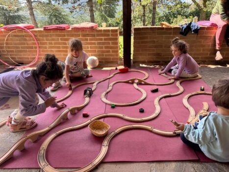 Costruire con i mattoncini kapla, giocare con il pongo fatto in casa, dipingere, immergersi nella lettura di un libro illustrato e tracciare un’enorme pista ferroviaria hanno riempito la giornata.