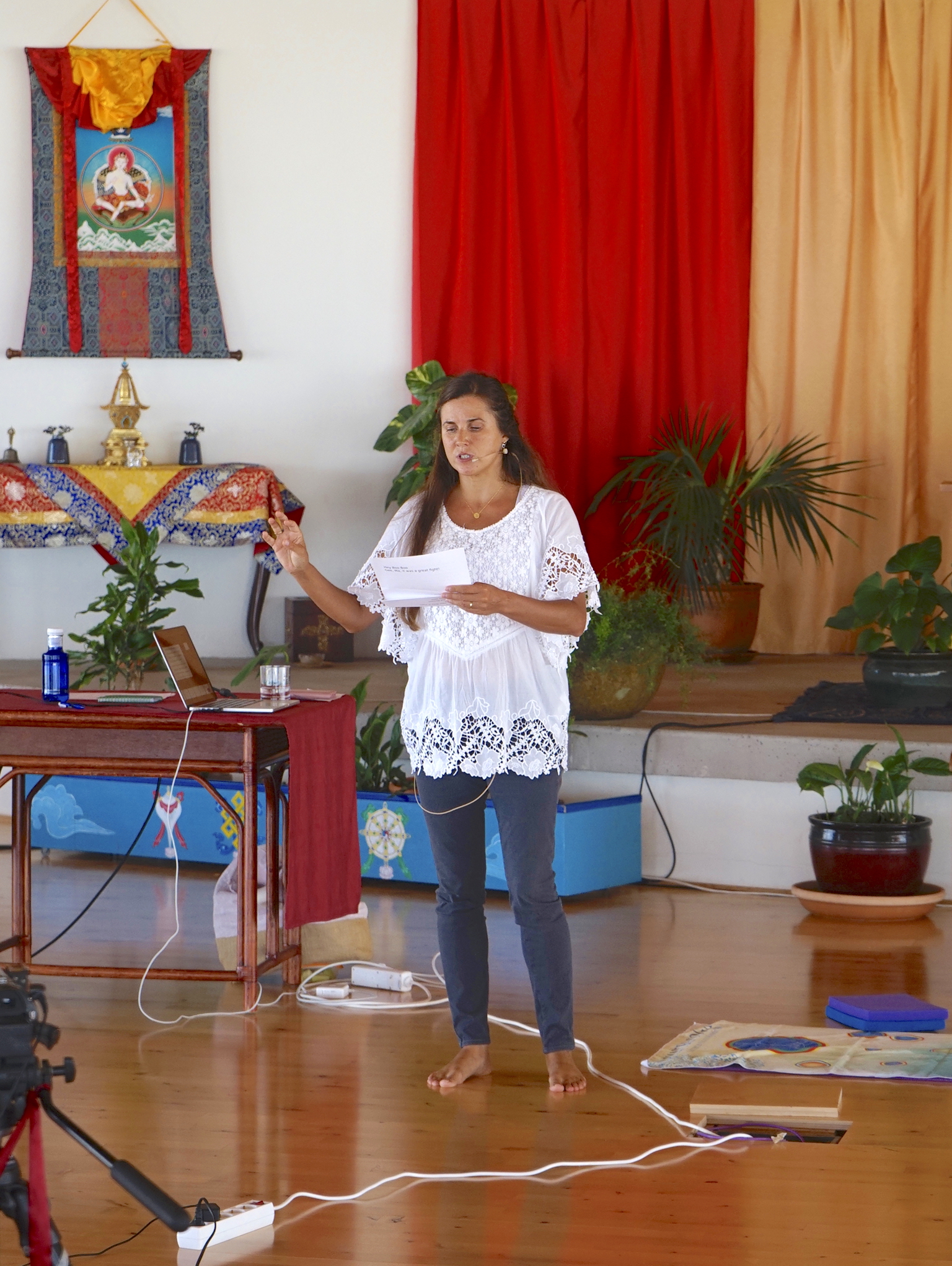 Libera e potenzia la voce, parte 2 – Saper parlare in pubblico a Dzamling Gar con Ekaterina Farrington a cui hanno partecipato in 27 via Zoom, 31 luglio, 1-2 agosto 2020