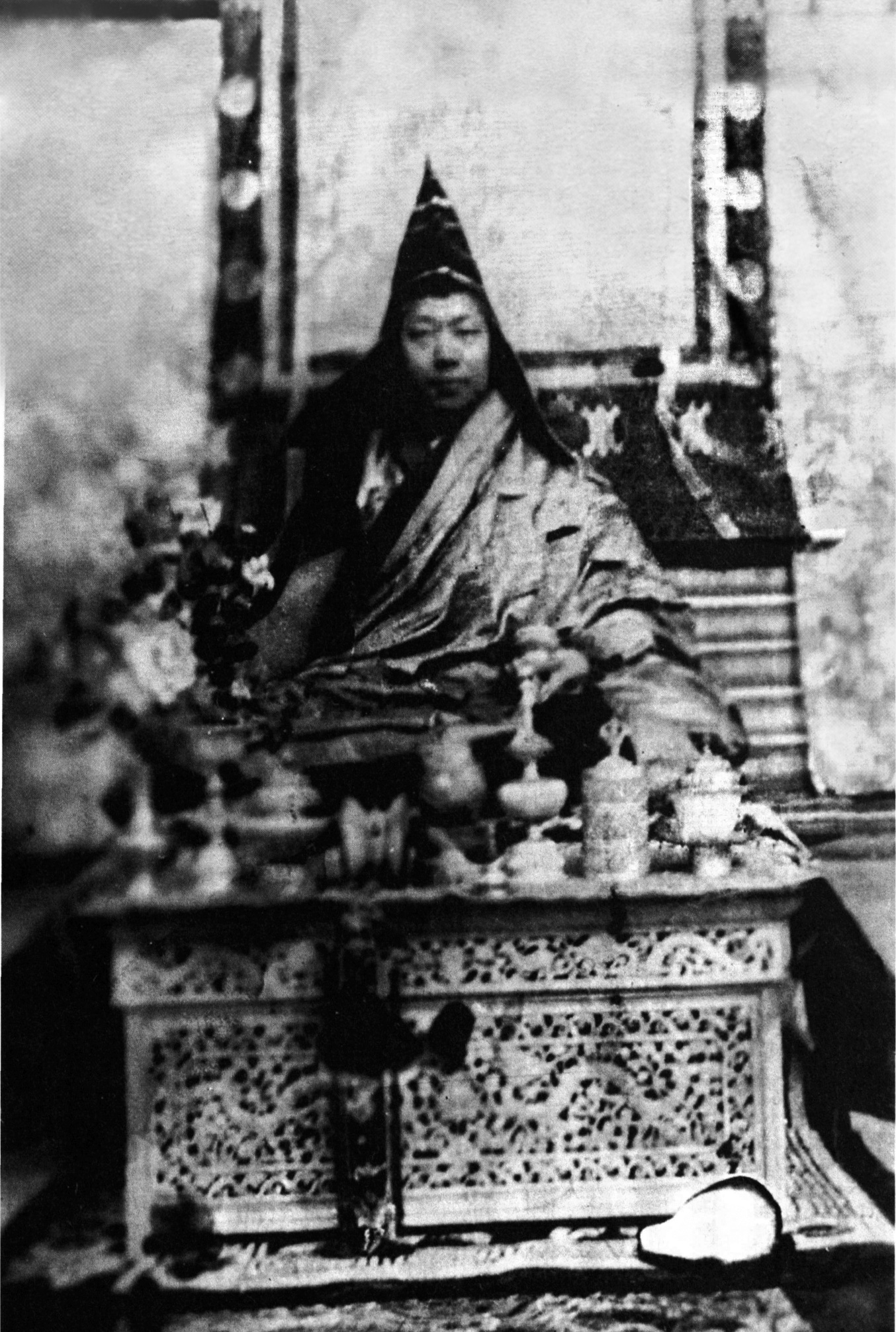 In gran parte Rimpoche ha indossato la stessa giacca a vento rossa e si è vestito con gli eleganti indumenti religiosi solo quando gli chiedevano di guidare cerimonie e iniziazioni rituali. C’è anche una foto con un elegante abito pesante di velluto che arrivava ai piedi sottilmente ricamato di motivi tibetani e Rimpoche disse che era la veste di antenati aristocratici che furono consiglieri di re.
