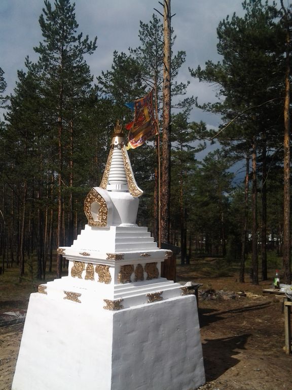 New Stupa in Ulan-Ude Posted by Liz Granger | 10 Sep 2015 | Kunsangar North | On September 9, 2015, the practitioners of Palbarling, Ulan-Ude, Buryatia blessed the Stupa they had constructed in the main place for the Lokapala called Gumuun Khaan on Mt. Komushka in the south part of Ulan-Ude.