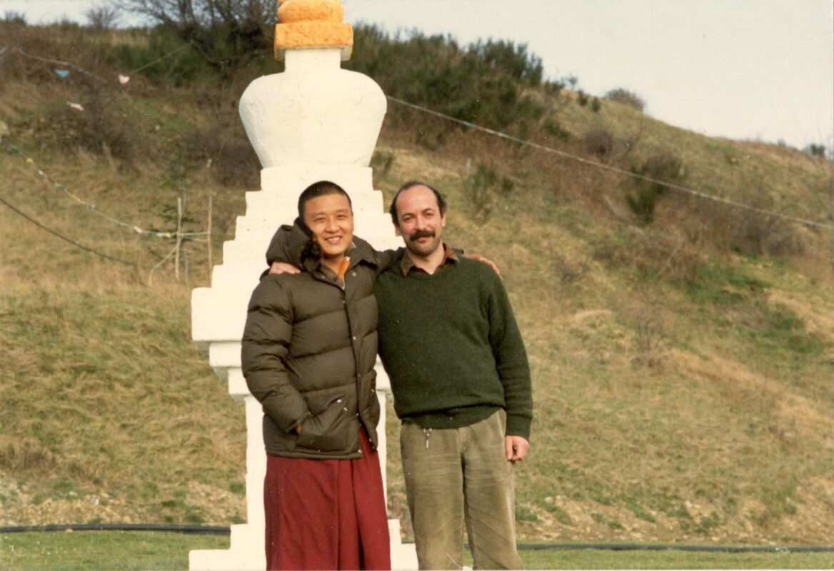 К счастью, мне не составляло труда следовать этим двум великим учителям, а точнее двум буддам: Чогьялу и Лопону. Я ходил на их учения, общался с ними прилюдно и в личных беседах, хотя некоторые из их «учеников» хотели, чтобы я выбрал только одного учителя, как будто я должен был пройти проверку на преданность! Однако сами учителя, наоборот, всегда интересовались здоровьем и общим состоянием друг друга, иногда проявляя озабоченность, но всегда с любовью. Помню, когда строительство гомпы в Меригаре подходило к концу, Чогьял Ринпоче подвёл меня и Джорджо Даллорто к центру гомпы. Мы посмотрели наверх, и он сказал мне, что видит образ Гуру Падмасамбхавы. Он не уточнил, была ли это реальная статуя или видение. А Лопон Ринпоче каждый раз по приезде приветствовал меня, обращаясь ко мне с фразой «почитатель Гуру Ринпоче». (Однажды, в тот период, когда я подолгу начитывал мантру Будды Амитабхи в японской традиции нэмбуцу, Лопон улыбнулся мне и начал читать китайское шестислоговое призывание Амитабхи Намо Амитофо).