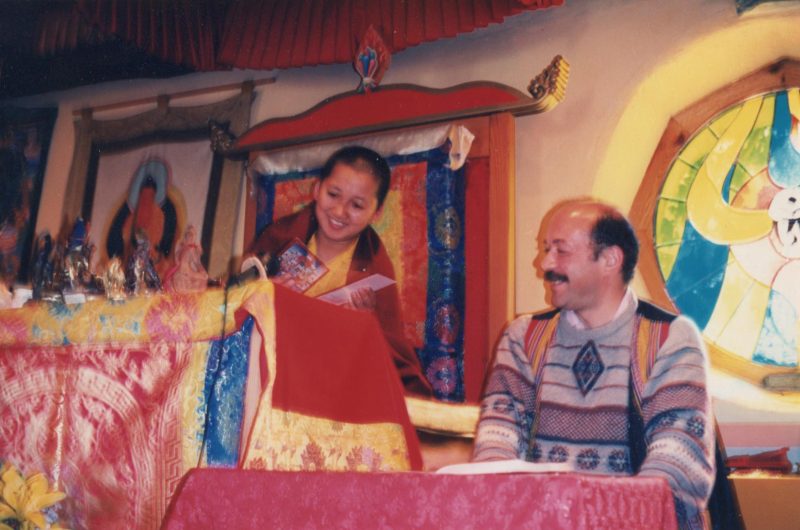 В 90-е годы я участвовал в курсе Чогьяла Ринпоче по Санти Маха Сангхе. Цель курса заключалась в том, чтобы укрепиться в знании воззрения, а также научиться скрупулёзно, но радостно делать практики. Я переводил его голос во время учений, а также учебник, переведённый Адриано Клементе на итальянский язык. (Я также перевёл выдающуюся книгу Ринпоче о боне и тибетской культуре «Друнг, Дэу и Бон», опубликованную издательством LTWA в Дхарамсале, Индия). К счастью, благодаря тому, что я занимался переводом, меня попросили переводить Дакини Церинг Палдрон, Кхандро Ринпоче, во время её учений на севере Италии. Тогда было положено начало нашим отношениям между учителем и учеником, которые продолжаются вот уже тридцать лет. От неё я познал всю ценность сочетания точных специальных знаний и парящего мистического видения. Когда я находился рядом с ней во время посвящения Падмасамбхавы, благодаря тому, что она является воплощением Еше Цогьял, в тот момент мне было даровано видение самого Гуру Ринпоче, за что я ей безмерно благодарен.