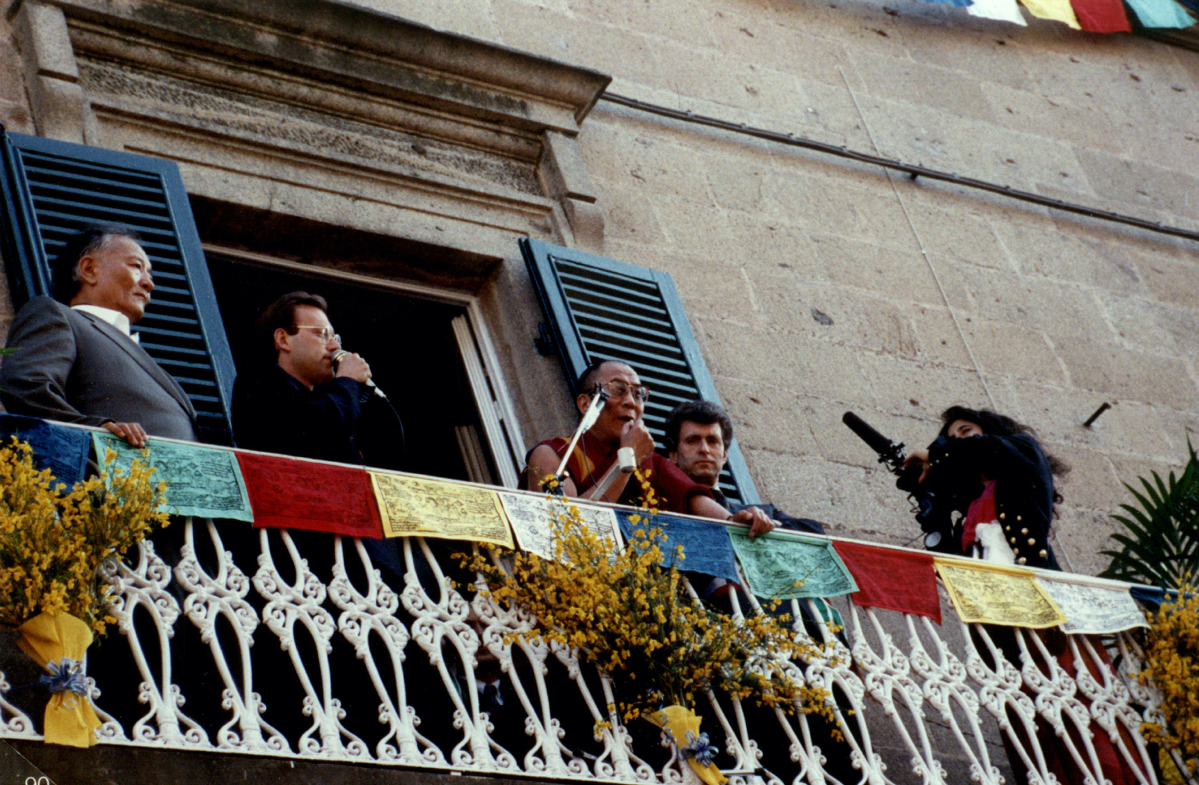 The first years the flags were printed at Merigar using wood blocks. An important change took place starting from 1990, when, for the imminent arrival of the Dalai Lama and the inauguration of the Gönpa, a great number of flags were needed that had to be hung not only in Merigar, but on the road leading to Merigar and also in Arcidosso as well as Grosseto. On that occasion, the tarchog, the long flags that hang vertically along the poles, were also prepared for the first time, and the Master personally wrote the mantras and the invocation that is inscribed there. Tarchog were placed along the road going down to the Gönpa and lungta were hung horizontally.