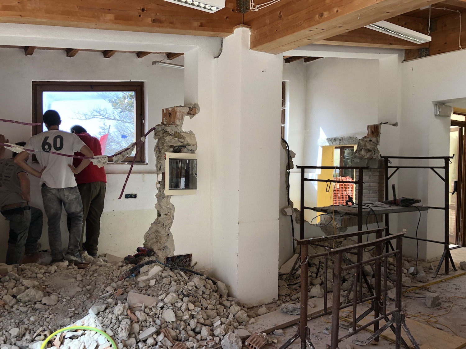 Work on the Yellow House has begun! The wooden floor in the room before the kitchen has been removed in order to be restored; the carpenters will do their best to salvage it. Furthermore, the wall that separated the dining room from the windows overlooking the valley and Mount Labbro has been taken down and the windows will be enlarged. These works are related to the Path of Awareness project.