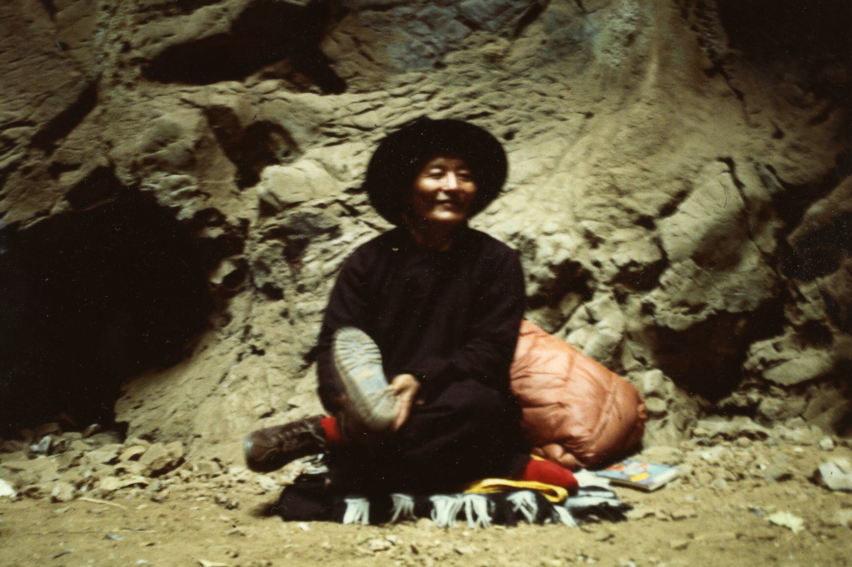 In the photo you can see Rinpoche putting on his boots after he had given a teaching in the cave at Maratika.