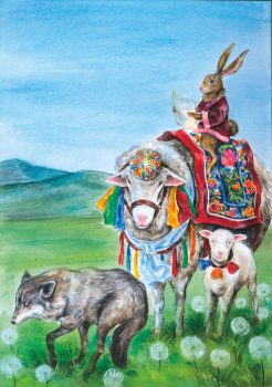 The book consists of twenty-one stories [told by Chögyal Namkhai Norbu] that I collected and also some illustrations. Some of the stories are traditional Buddhist stories that were recounted by ancient masters a long time ago in order to make the teachings more understandable. This is one part. The second part is stories, some of which are quite ancient stories related to animals from which we can take examples. For instance there is the story of the hare, the sheep and the wolf. This story narrates how the rabbit manages to escape from the wolf and rescue the sheep. Then there is the story of the men who rescued all the fish.