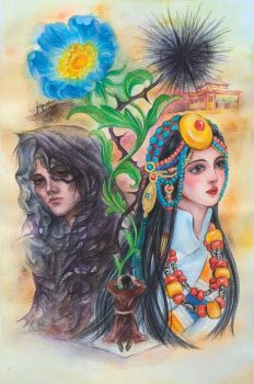 Oliver: Yes. When I started to collect these recordings of Namkhai Norbu Rinpoche telling these stories in the early 80s and late 70s I understood that if I only published text in the book, nobody would like it. It needed to be illustrated. Since I’m not artistic at all of course I could not do it. So I went to Migmar Tsering, director of the Dynamic Space of the Elements, who was collaborating with some artists.